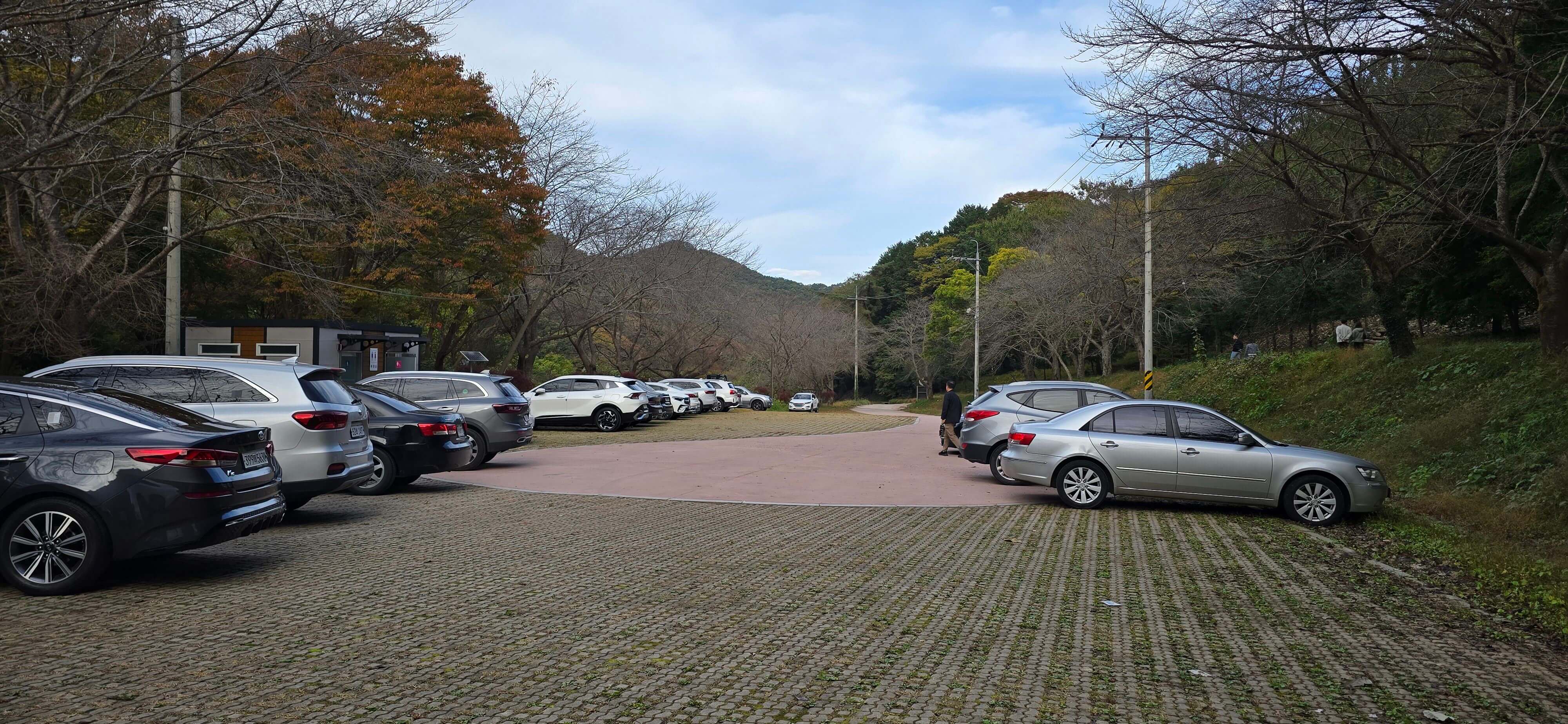 818번 국도에서 약 500m 들어서면 주차장이 있습니다. 그리 큰 면적은 아니지만 약 30대 정도는 세울 수 있는 정도의 주차장입니다.