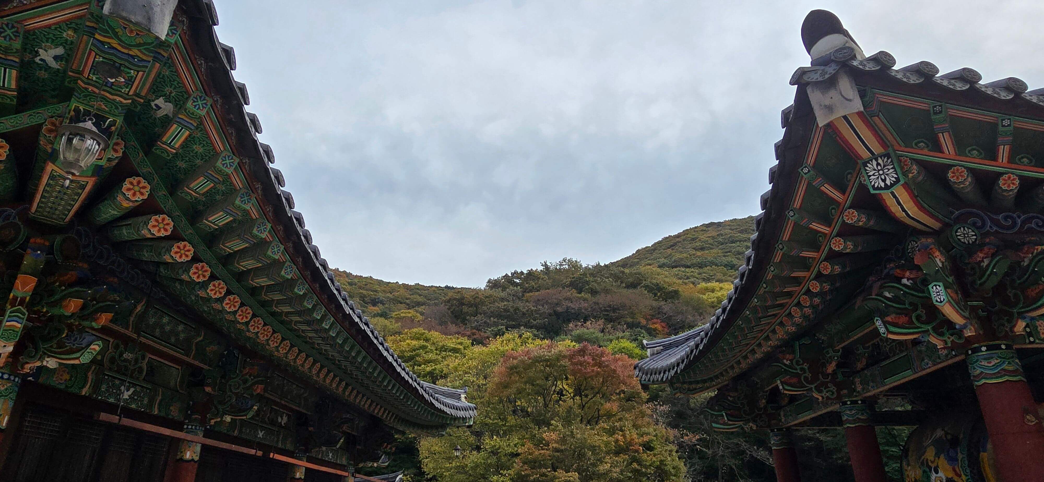 우리나라 특유의 지붕의 모습이 하늘과 산세와 어우러져 멋을 뽐내고 있습니다.