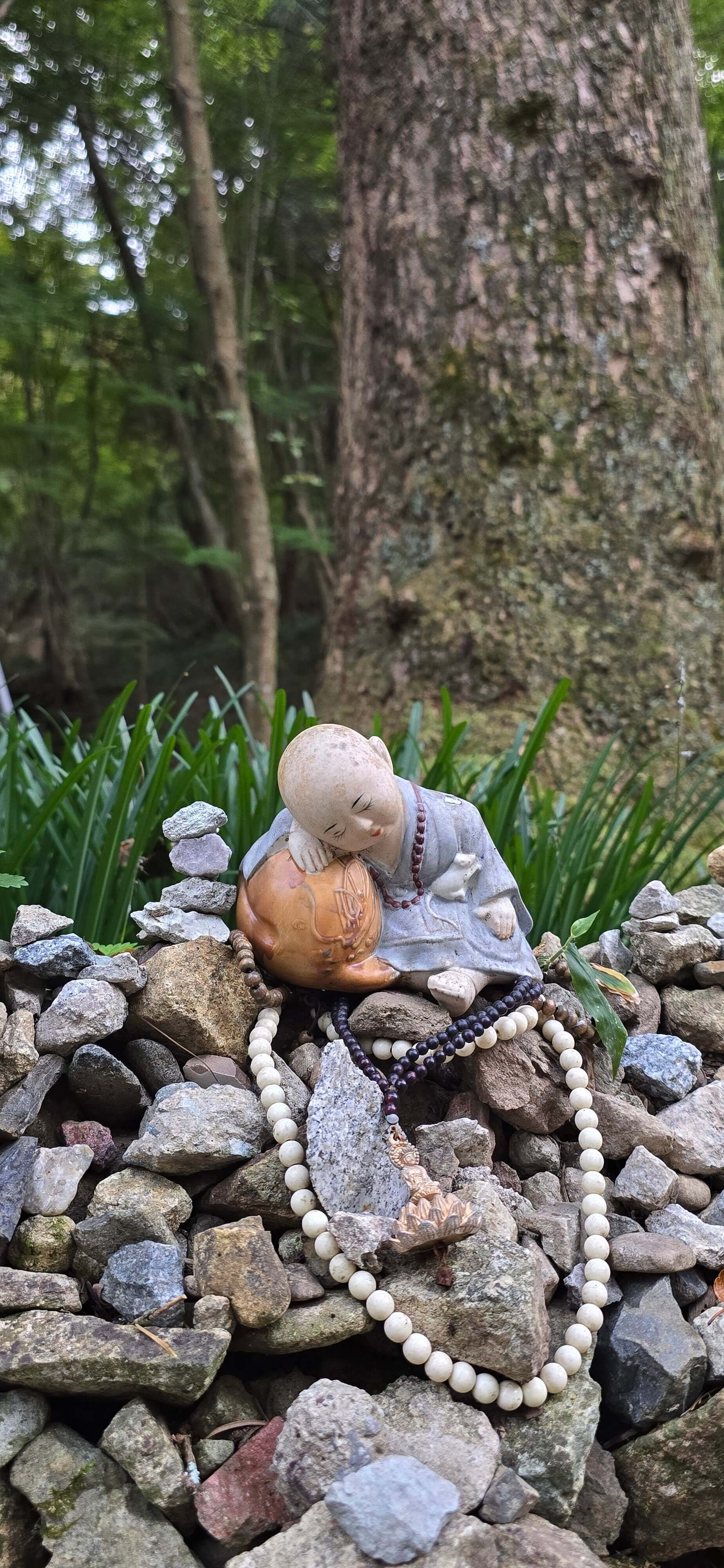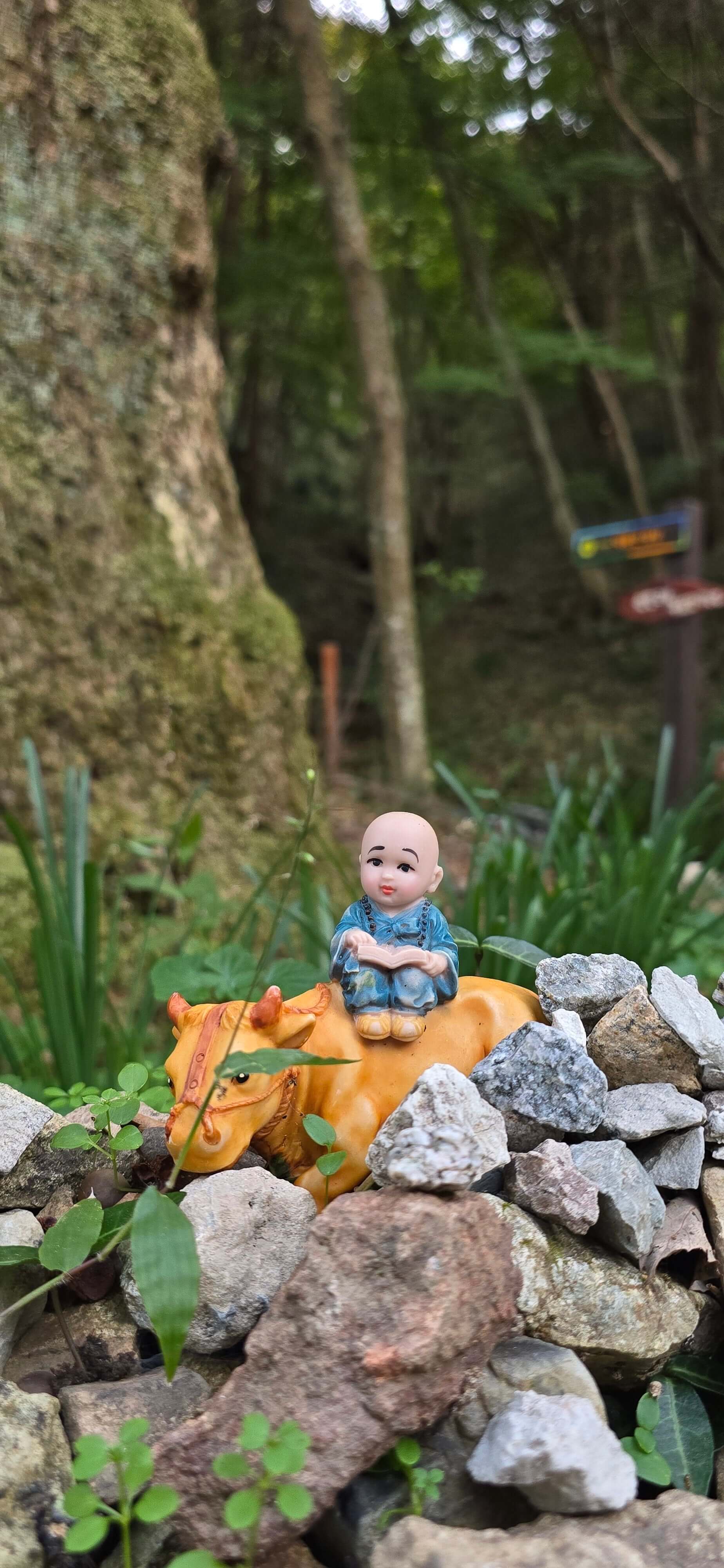 사찰에 거의 다다를 때 자그마한 돌탑들 사이로 아기 동자 모형이 자리 잡고 있습니다. 절이라는 공간과 제법 잘 어울리는 모형상이 시선을 끌었습니다.
