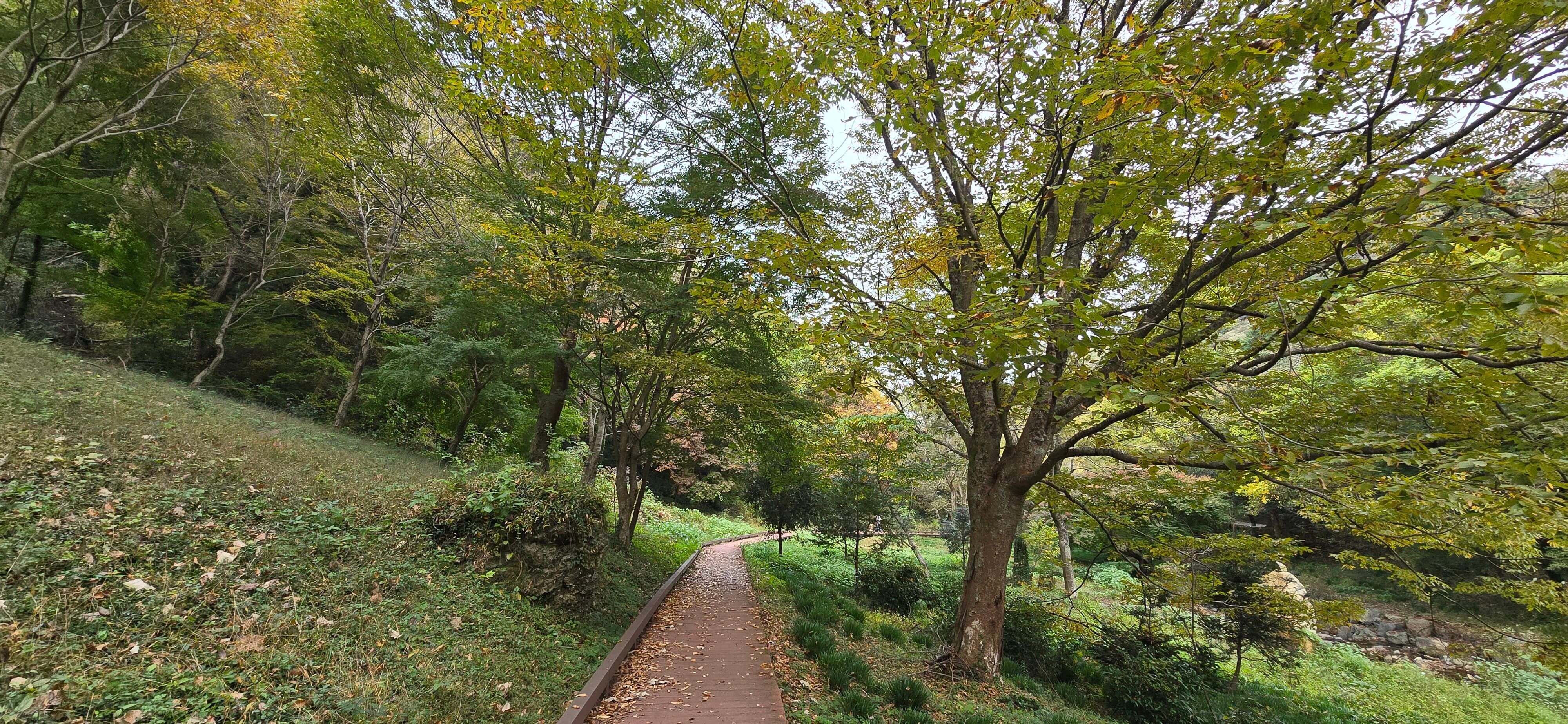사찰을 벗어나 주차장으로 향하는 길은 테크길로 걸었습니다. 흙길로 된 임도와는 또 다른 기분과 풍경을 느낄 수 있었습니다.