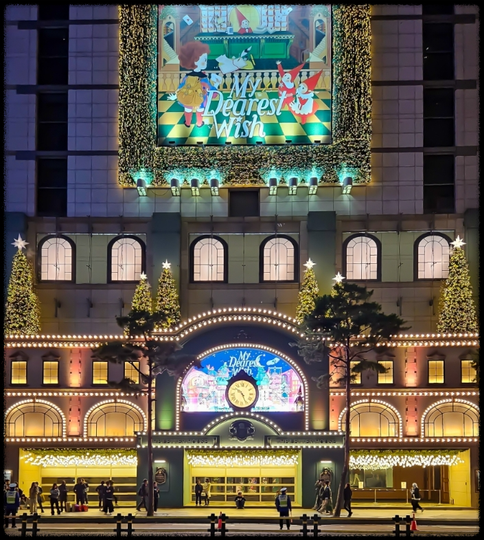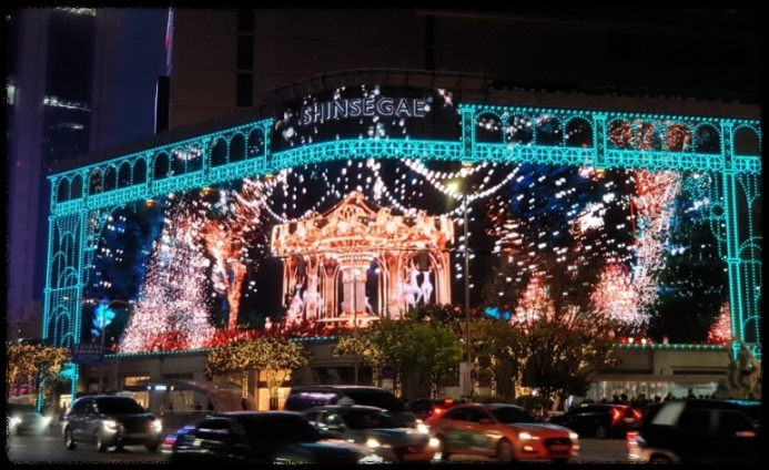 매년 많은 사람들이 찾는 크리스마스 명소입니다. 올해는 11월 9일부터 내년 1월 31일까지 점등한다고 합니다. 백화점 외관 벽면을 375만 개의 LED칩을 사용하였다고 합니다. 작년대비 약 1.13배 더 커진 사이즈라고 합니다.