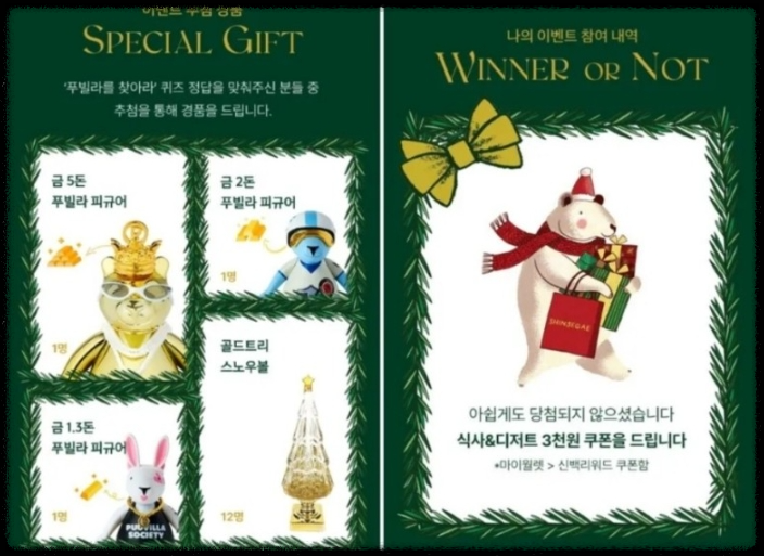 영상을 보다 보면 크리스마스 기차를 타는 곰돌이 푸빌라를 보게 되는데, 영상 속 푸빌라를 찾아 신세계 앱에서 이벤트 응모하면 이벤트 추천경품도 있으니 응모해 보시길 바랍니다.