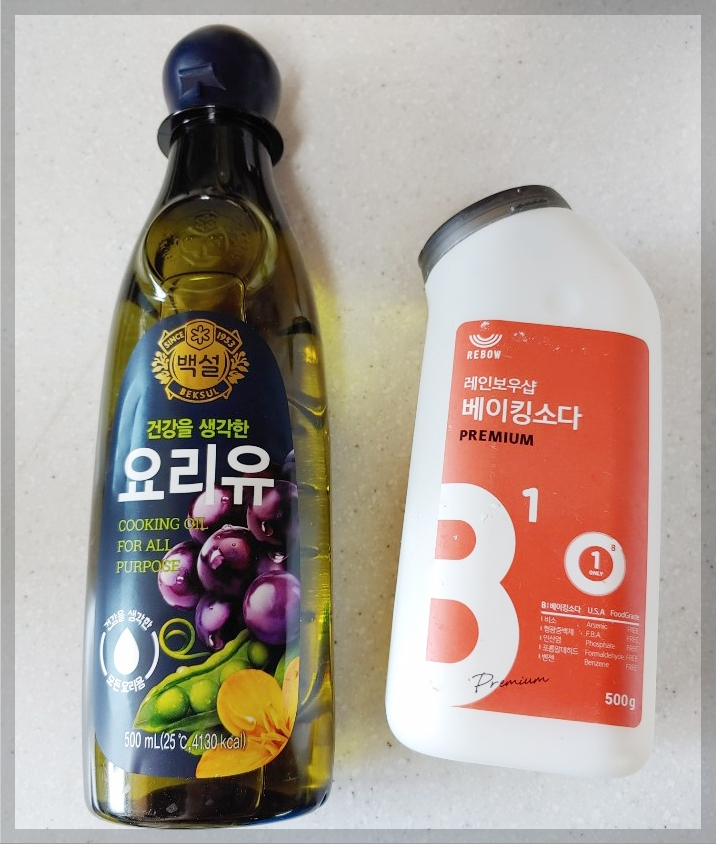 1. 식용유로 연마제(검은색 물질)가 나오지 않을 때까지 닦아줍니다. 물로는 제거되지 않지만 식용유에는 잘 흡착되어 제거됩니다.