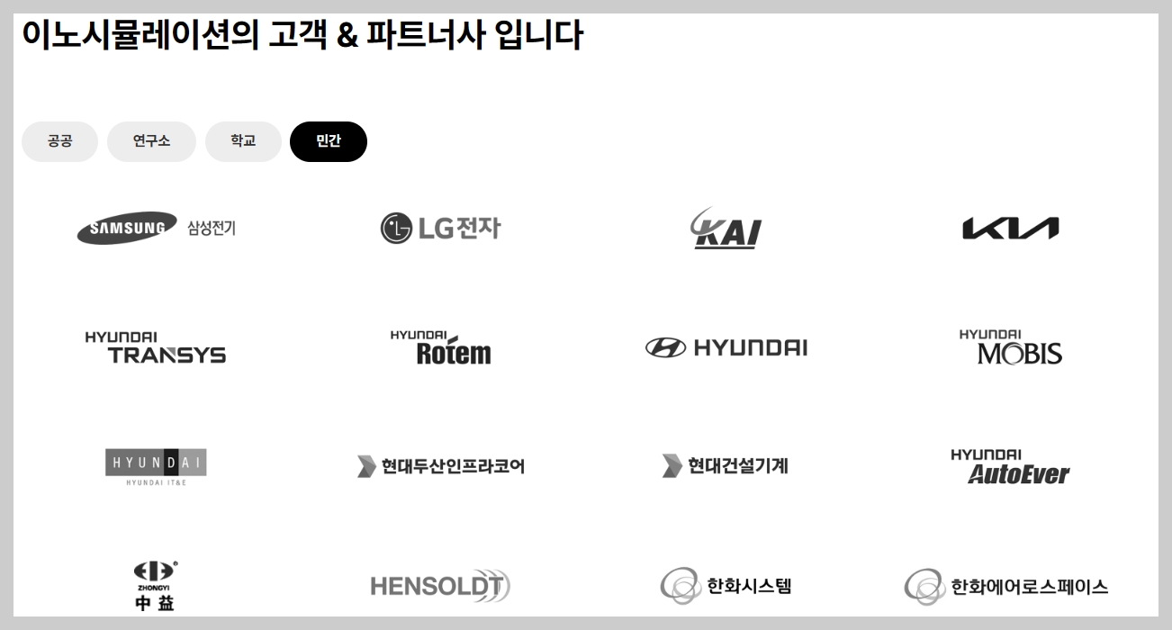 한국도로공사, 국립과학수사연구원 등의 공공기관과 LG전자, 기아, 현대로템 등 민간 업체 등 다양한 고객사를 두고 있습니다.