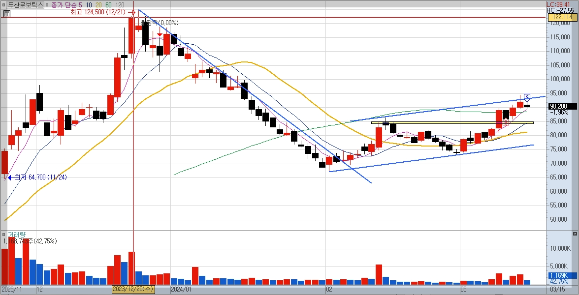 상장되지 얼마 되지 않은 로봇주 입니다.