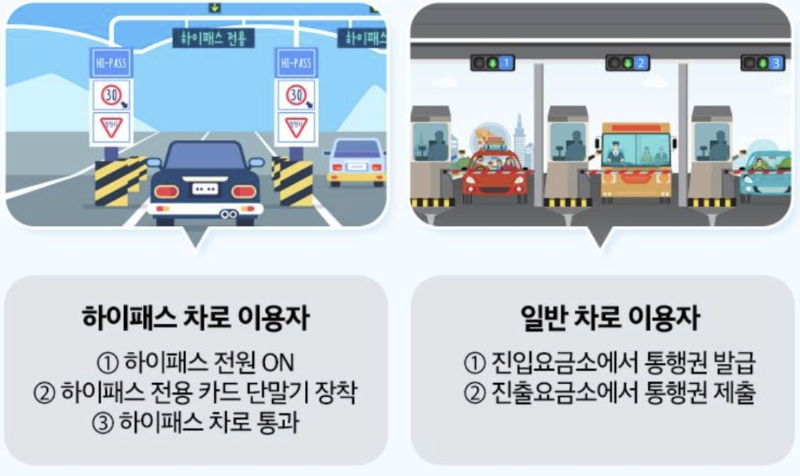 일반 차로 이용자는 요금소에서 통행권을 발권받고 진출요금소에서 제출하면 면제 처리 됩니다.